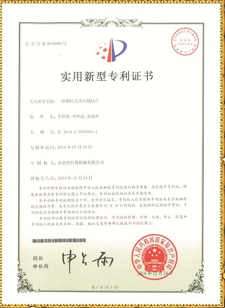 螺桿式測試臺技術專利 頂壓式試驗臺專利