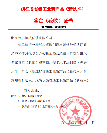 省級工業新產品鑒定證書