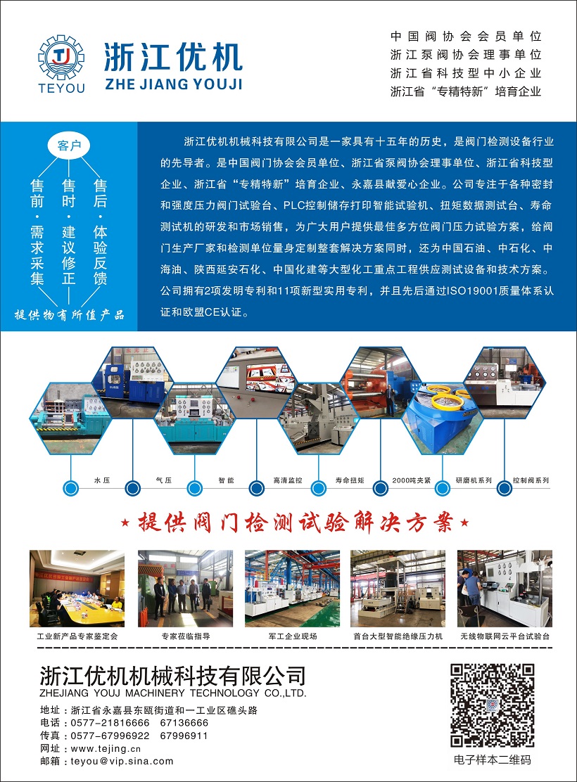 浙江優機機械科技有限公司憑借研發投產的智能集成密封液壓機,成功入榜浙江省先進制造業首臺套企業名單,浙江優機機械科技有限公司多個產品通過國家閥門(浙江)檢測中心檢測,相關技術經浙江省省級工業新產品新技術鑒定,擁有2項發明專利和11項新型實用專利,是浙江省泵閥協會理事單位、浙江省“專精特新”培育企業、浙江省專利示范企業、浙江省科技創新型企業、溫州市科技創新企業、永嘉縣百星企業、永嘉縣愛心企業、中國石油準入供應單位、中國寶豐能源準入供應單位、山東核電設備有限公司合格供應商。