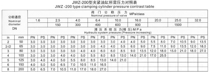 9、JWZ型壓力對照表